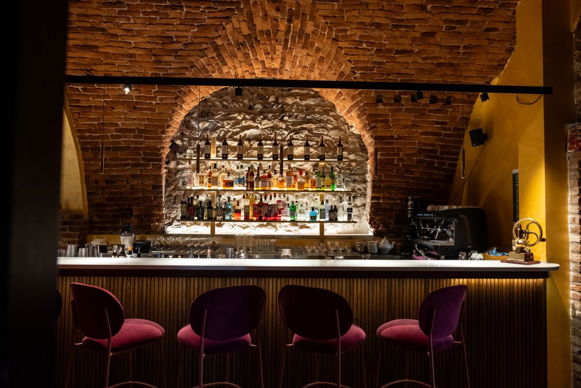 - la zona bar, in cui un lungo banco accoglie i clienti in un’atmosfera elegante e la work station consente di preparare con maestria cocktail d’autore ;
