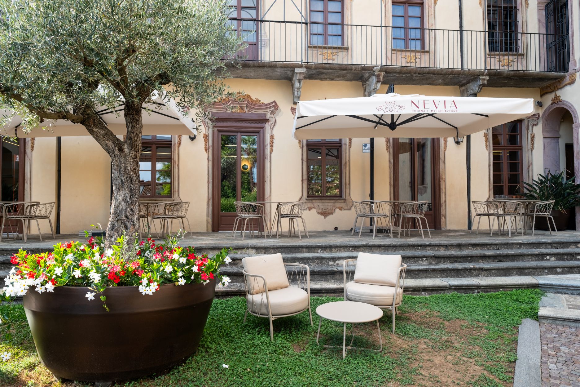 All’interno di un edificio storico del XVII secolo, Villa Mistrot, abbiamo realizzato il ristorante Nevia, uno spazio elegante e accogliente, dove il design moderno incontra lo stile barocco in un’atmosfera calda e rilassante.